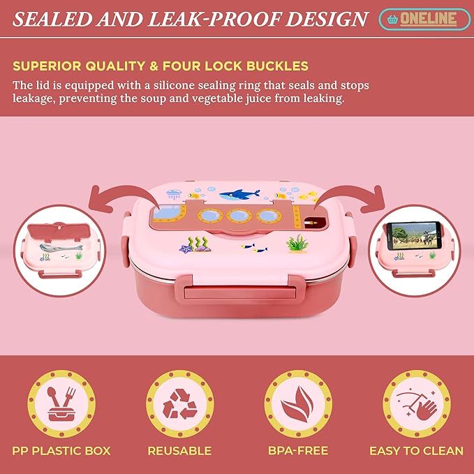 Leak proof: Each section is individually sealed to keep your meals and snacks fresh and clean. Note: The lids should be evenly distributed over the large and small compartments as shown in the photo. We recommend washing the top to maintain an airtight and leak-proof sealing system.